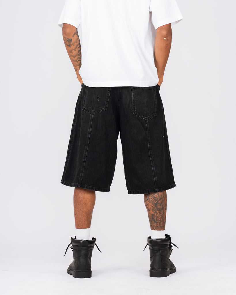 DENIM PANEL SHORTS - BLACK WASHED